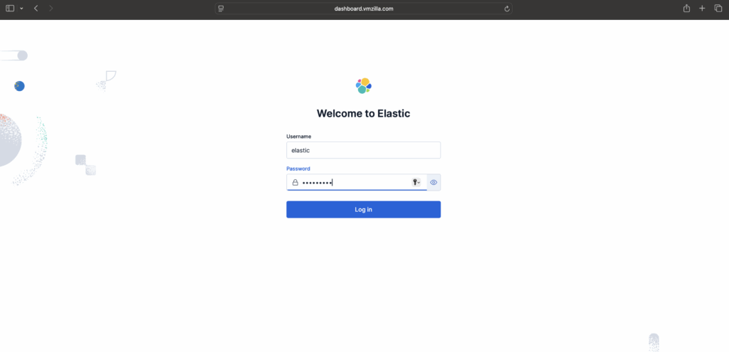 Open your preferred web browser and navigate to the fully qualified domain name (FQDN) or the public IP address assigned to your Kibana server. For example, we’ll use: http://dashboard.vmzilla.com/